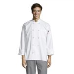 A commercial laundry can give a chef coat the beating of a lifetime. That’s why we developed this hard-working chef coat. Our Workhorse can take a heavyweight prizefighter pounding in the kitchen, go the distance in the laundry and come out looking like champion. Offers ten buttons and a classic style.